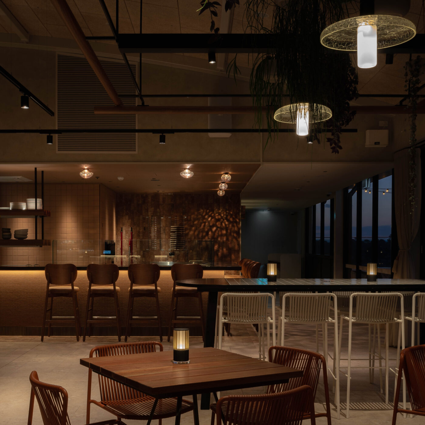 Rather than dominate, the lighting gently integrates with the rooftop’s layered design, responding to sun and shadow, people and place.