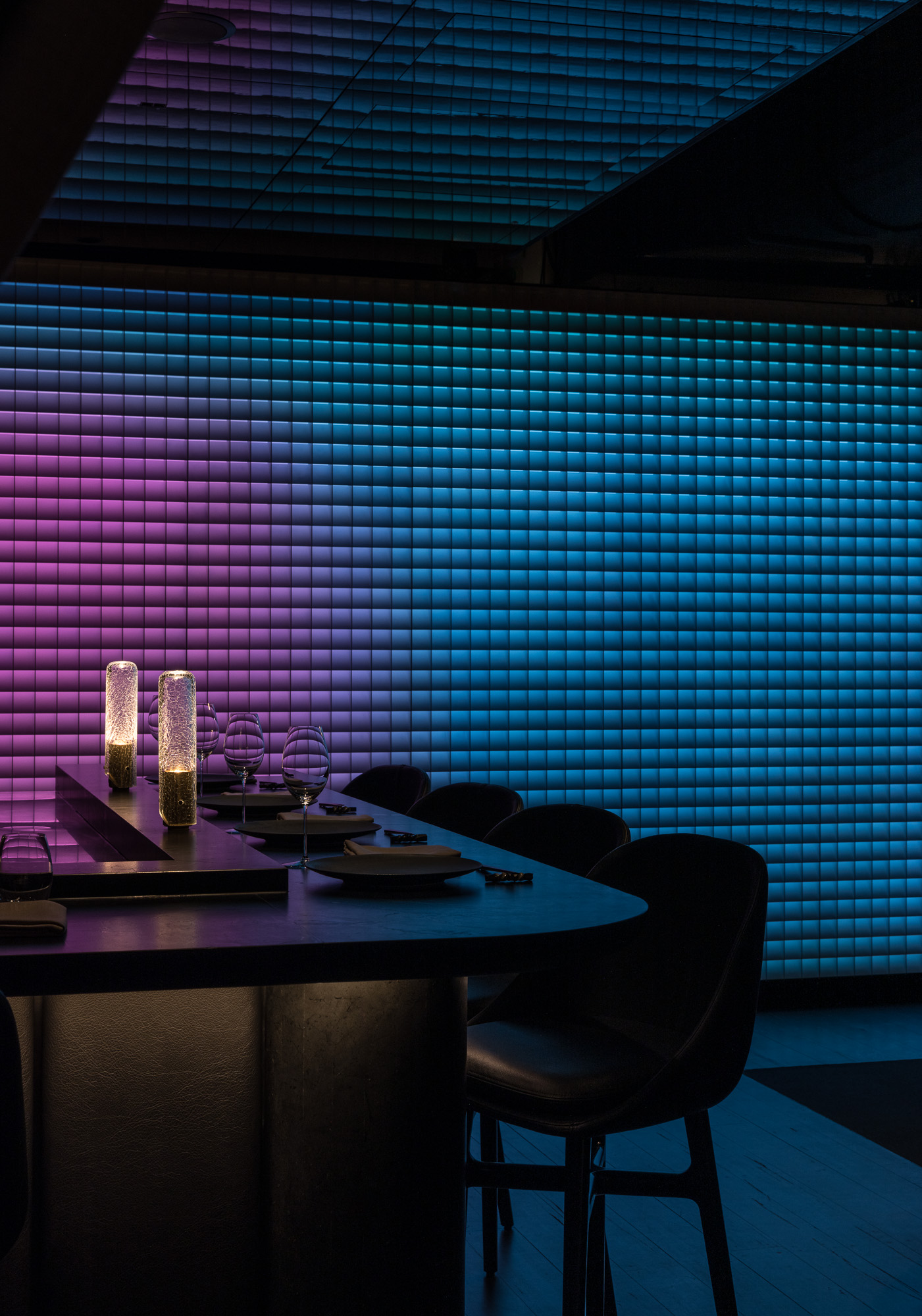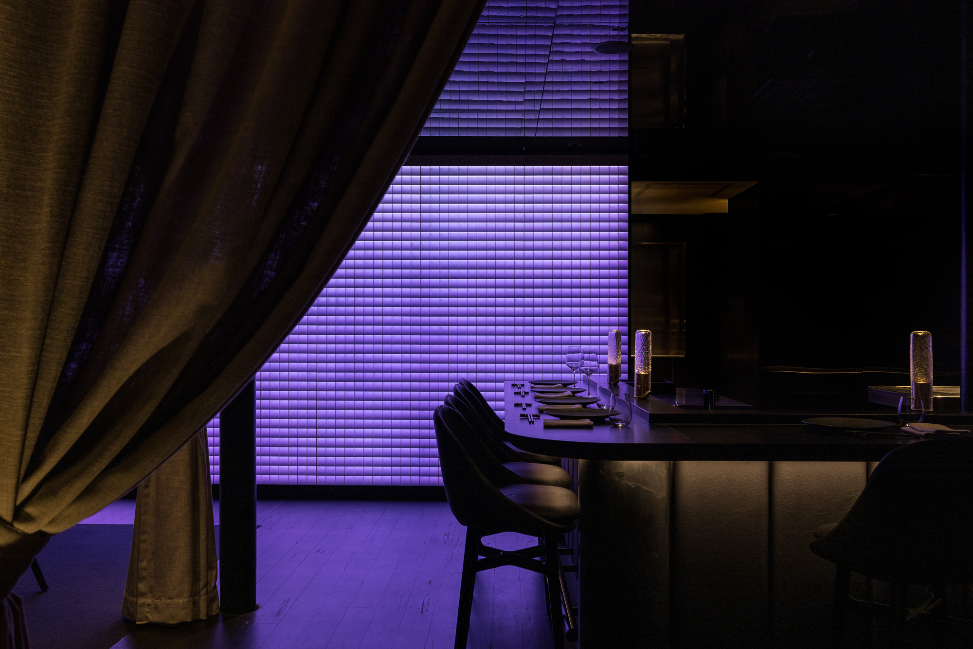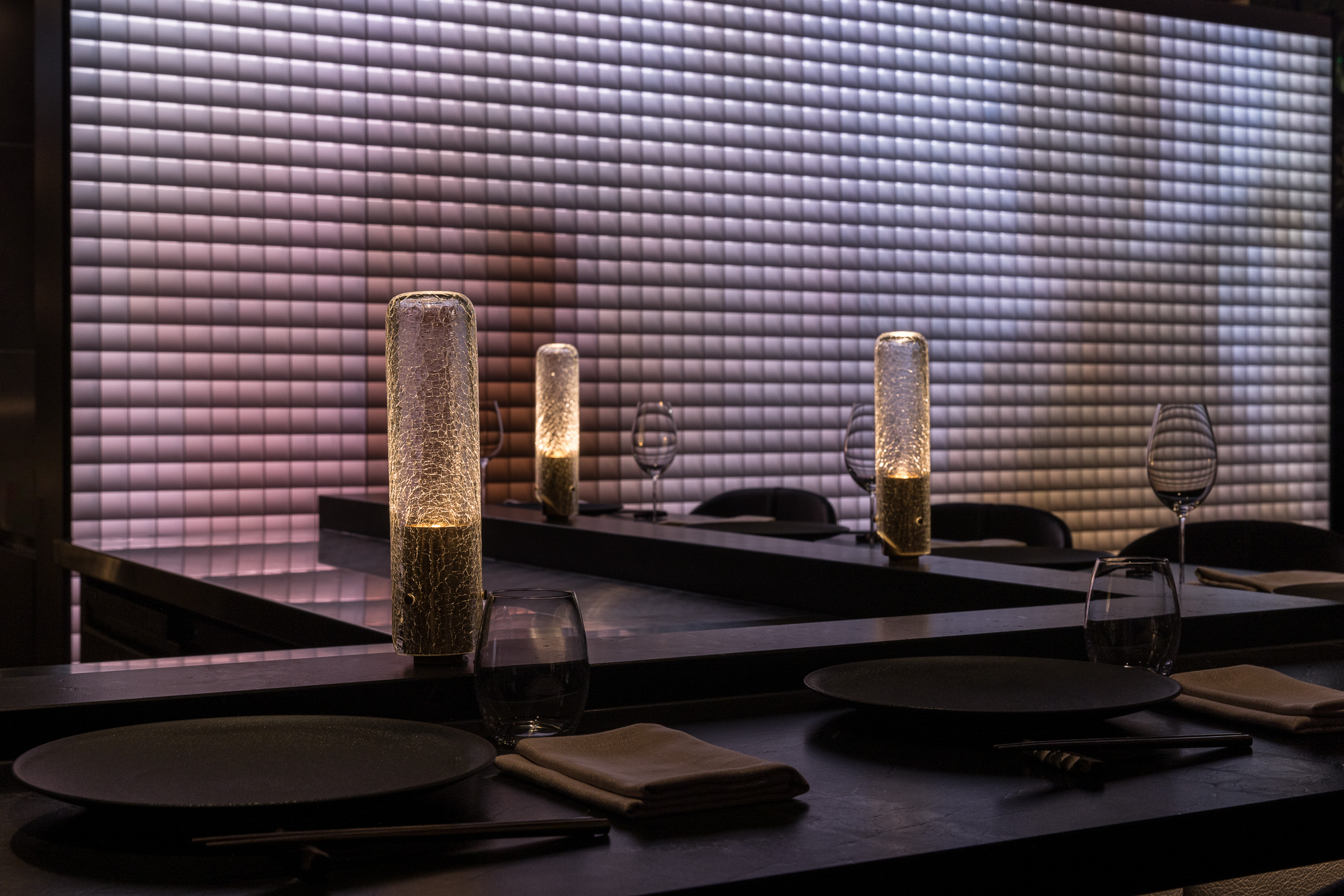 ADesignStudio is proud to have contributed to this achievement, with our Crackle Table Lights framing the chef’s table in Garaku. These sculptural luminaires are showcased in front of MISE-EN-SCÈNE, a pixel panel artwork by Tokyo-based spatial designer Hiroto Yoshizoe—an evocative backdrop that deepens the sensory experience of the space.