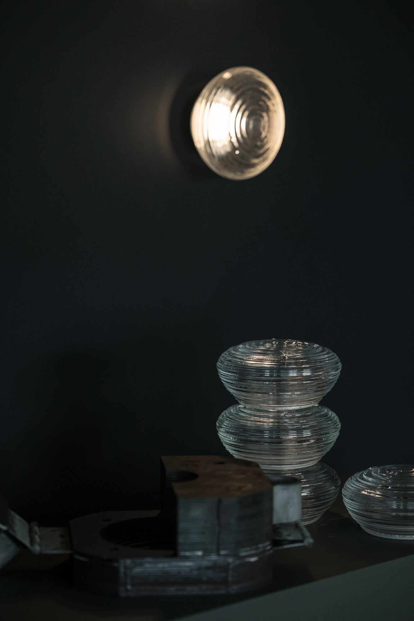 Crafted using a custom three-piece stacking steel mould, each glass fitting is handblown by our skilled artisans, resulting in subtle variations that make every piece unique. The stepped form, reminiscent of a Fresnel lens, offers both visual depth and a nostalgic charm. The layered structure and tonal glass tints inspired the fitting’s name, Macchiato, evoking the soft stratification of the coffee drink.