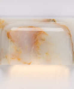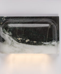 Coast and Cove offers a collection of wall lights that emphasize sculptural materiality and form. The metal versions, crafted from solid blocks of brass or stainless steel, exhibit robustness and precision. In contrast, the stone versions, available in Marble and Onyx, present a unique aesthetic, with each piece bearing distinct characteristics and varying degrees of transparency that reflect the geological history of the rock. These wall lights are suitable for both indoor and outdoor use.