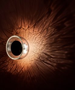 Extending from the Greenway Crackle Collection, ADesignStudio’s Crackle Wall Lights offer lighting that provides a dramatic and striking visual effect. The gently curved form of the crackle glass fitting pushes light back onto the wall in shard-like reflections. These unique radiating motifs allow the wall lights to serve as a gripping art piece, as well as ambient lighting.