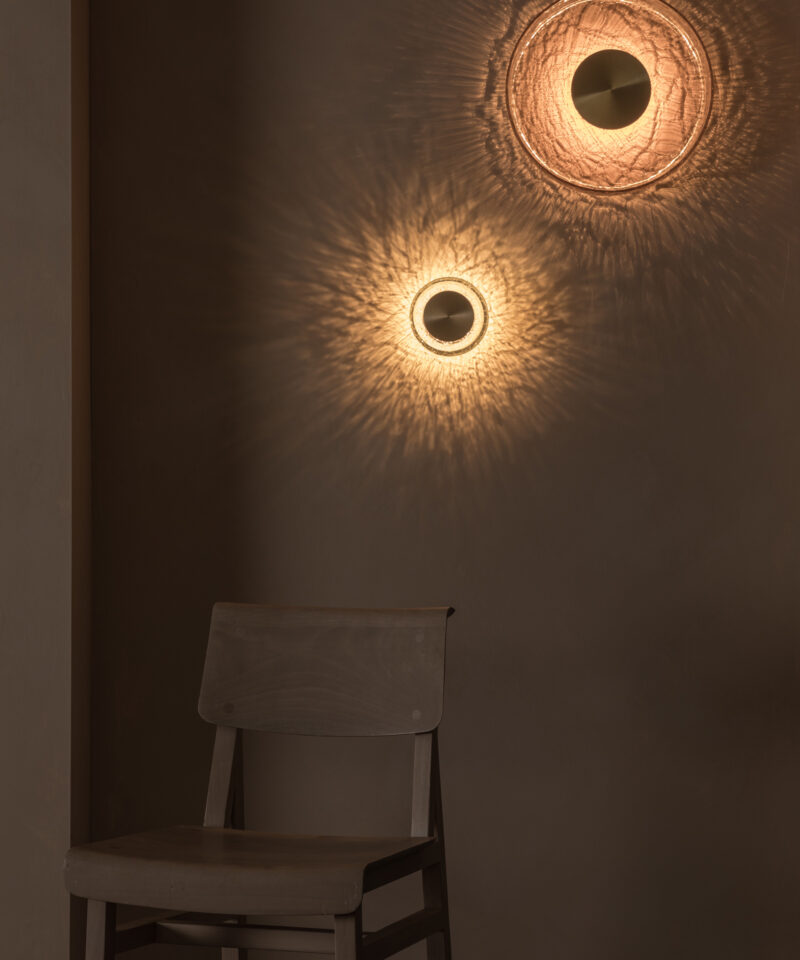 Extending from the Greenway Crackle Collection, ADesignStudio’s Crackle Wall Lights offer lighting that provides a dramatic and striking visual effect. The gently curved form of the crackle glass fitting pushes light back onto the wall in shard-like reflections. These unique radiating motifs allow the wall lights to serve as a gripping art piece and ambient lighting.