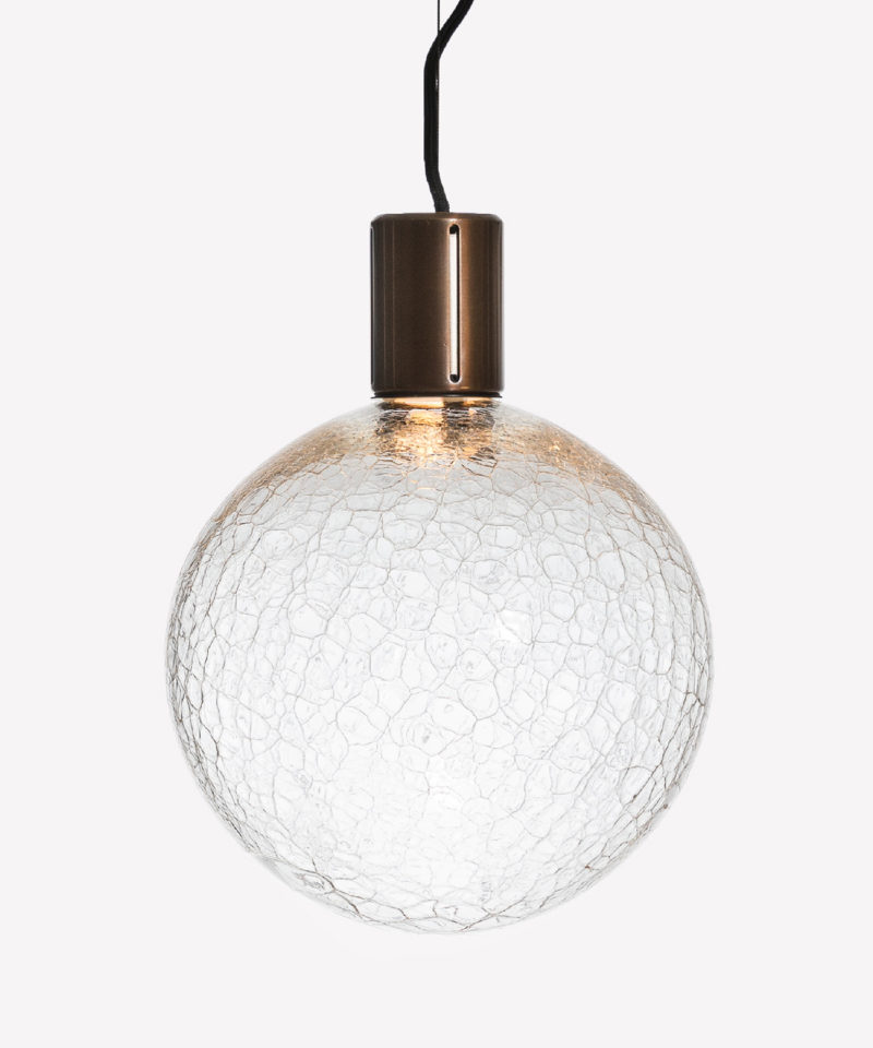 As the vessel increases in scale, the glassblowing process becomes a feat of strength and the incredible skill of the hand that made it becomes more and more evident. The handblown process results in organic crackling in each artefact. No two pieces are the same.