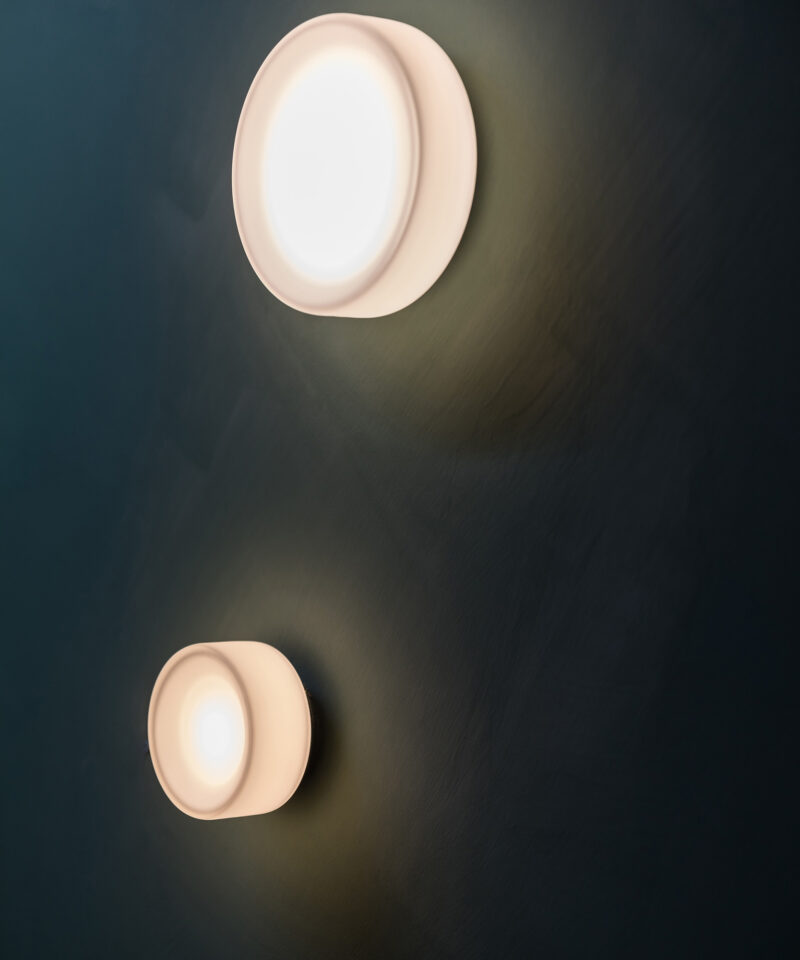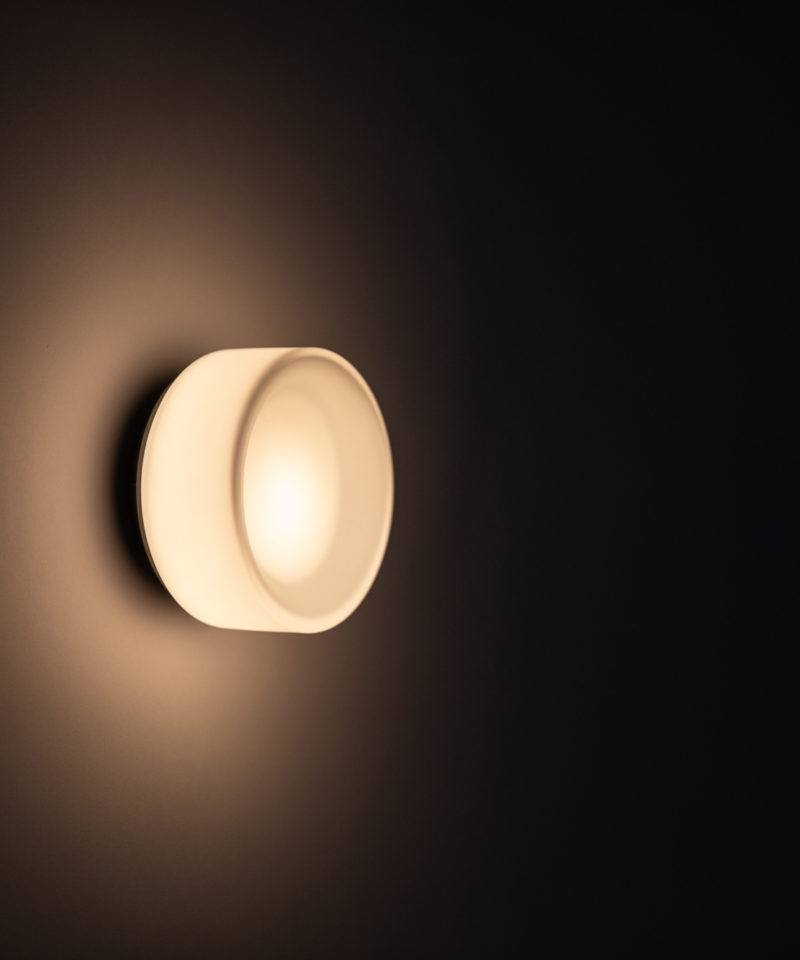 Jokes aside, the FlatWhite is a light fitting that is warm and soft with a smooth tactile quality. The handblown glass diffuser is detailed with a concaved chamfer and acid etch opal finish. Almost non-existent, it sits just off the wall with a cutaway heatsink that fades into the shadows emphasising the most important aspect of this fitting – the light.