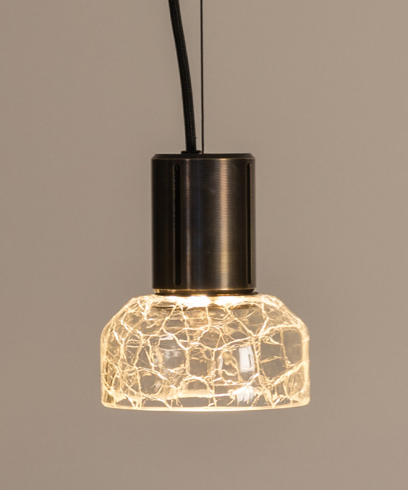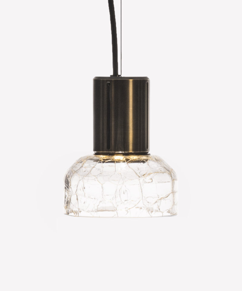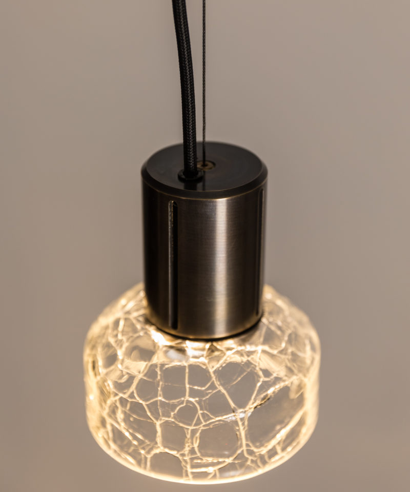 ADesignStudio’s Crackle collection sparks intrigue when hung from above. The design draws on Greenway’s system of lighting components referencing Australia’s historic maritime architecture. The outer glass has a crackle glass finish, which illuminates when lit. The metal fitting helps to conceal the internal light source, illuminating the space or table below.