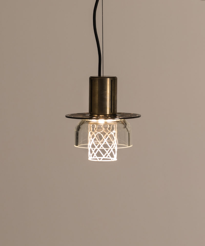 The Greenway lighting system is made from metal fitting which conceals the light source, a metal disk, a series of handblown glass forms which diffuse the light akin to the “lantern room”, and a 3D printed, perforated lattice. The light source is a concealed warm LED with dimmable control options.
